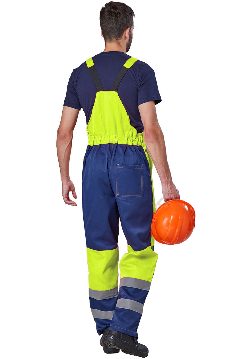➠ Полукомбинезон с притачной грудкой и спинкой, с застежкой гульфика на пуговицы, с застежкой в левом боковом шве на пуговицы. Два боковых накладных кармана. Наколенники. На правой задней половинке накладной кармана. На груде накладной карман с клапаном. Спинка стянута эластичной тесьмой. СОП 50 мм проходит вкруговую в два ряда по низу полукомбинезона.